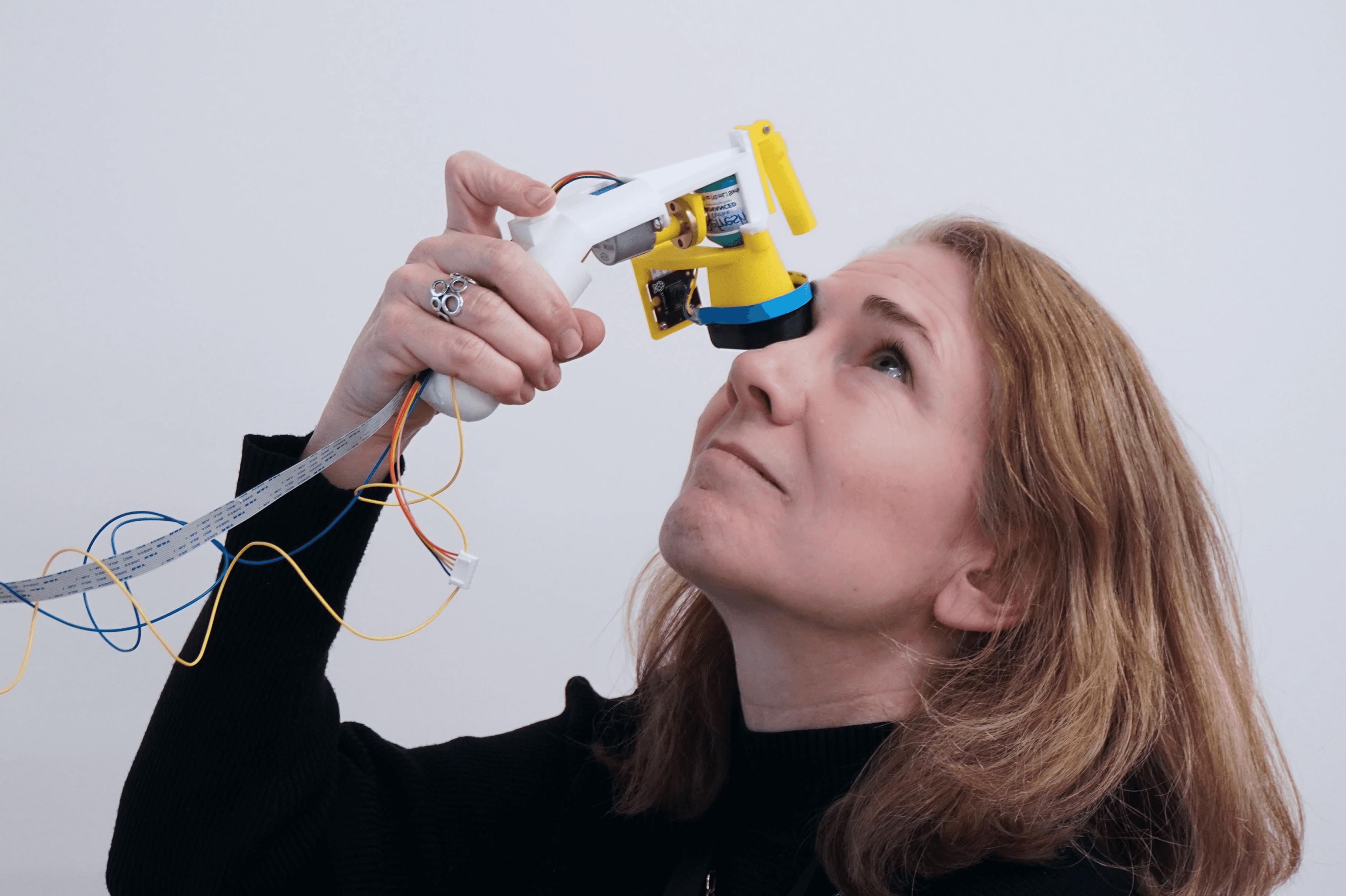 The hardware direction followed the same logic: thick enough to grip securely with reduced motor control, light enough not to fatigue an unsteady hand, with a single button that required no fine motor precision.
